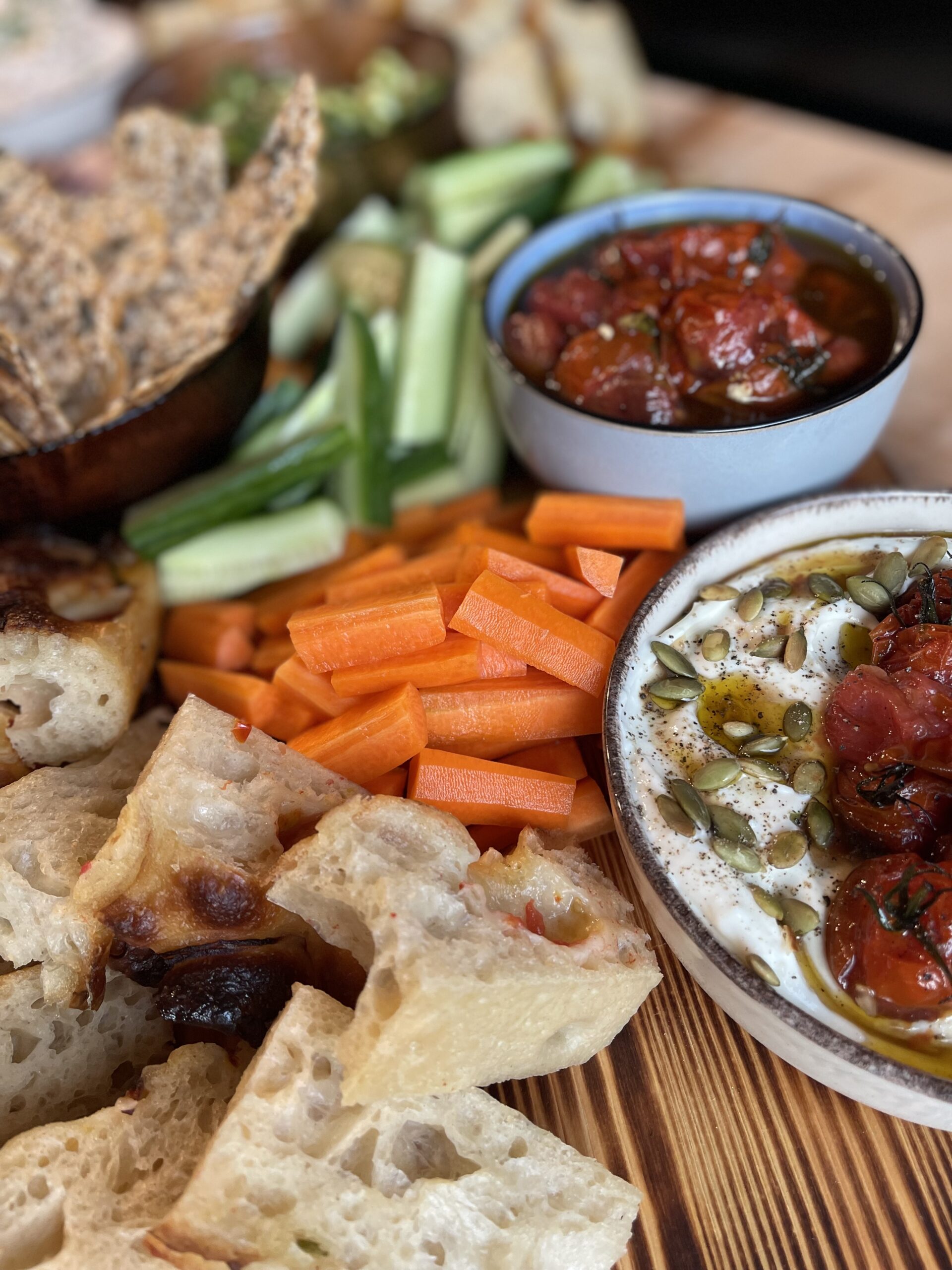 Focaccia ja mozzarella-enda küpsetatud focaccia,basiiliku pesto,rukola,mozzarella,röst.tomat.