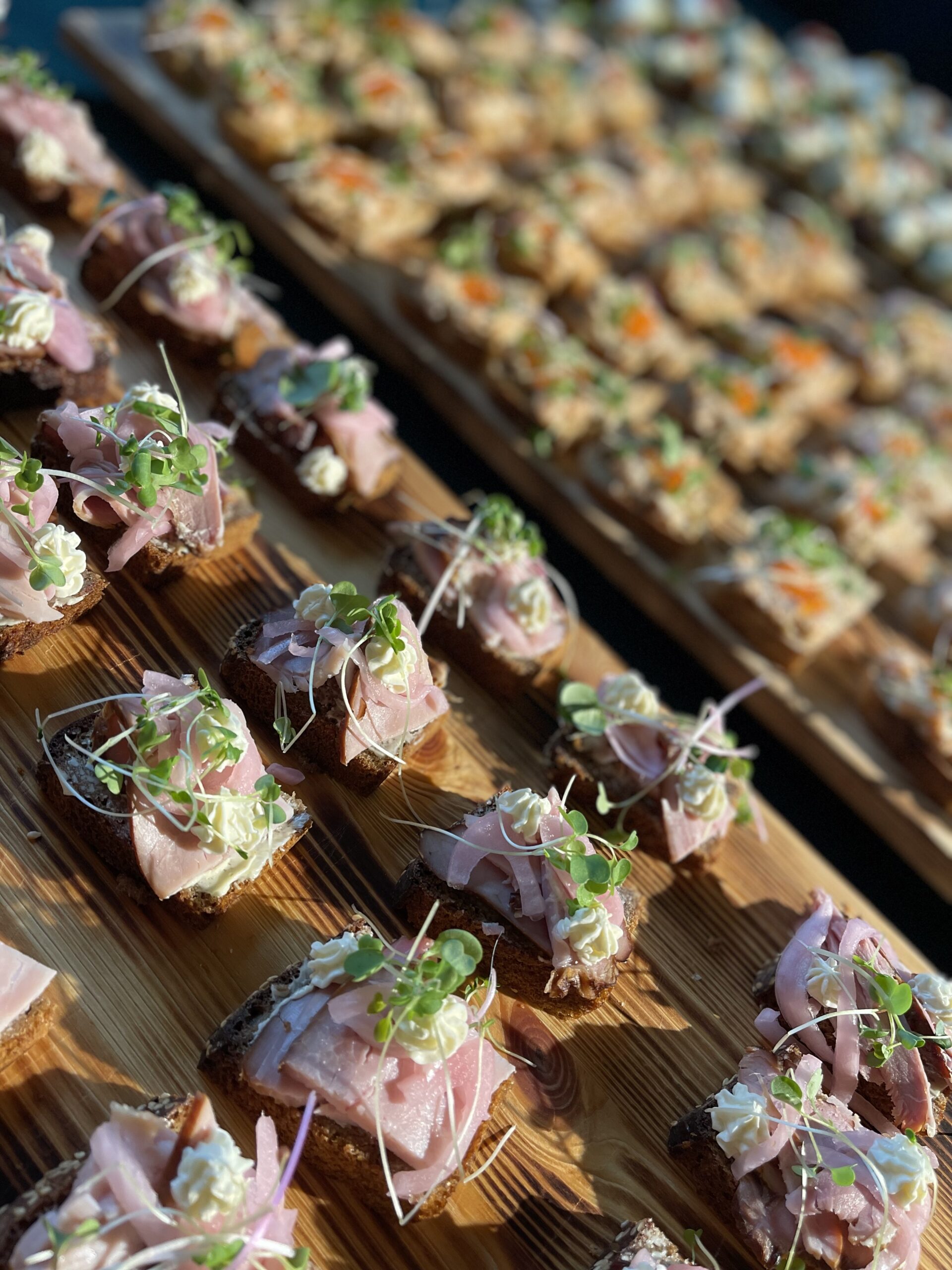 Leib ja suitsusink-käsitöö rukkileib,või,suitsusink,marineeritud sibul,toorjuust,mädarõigas